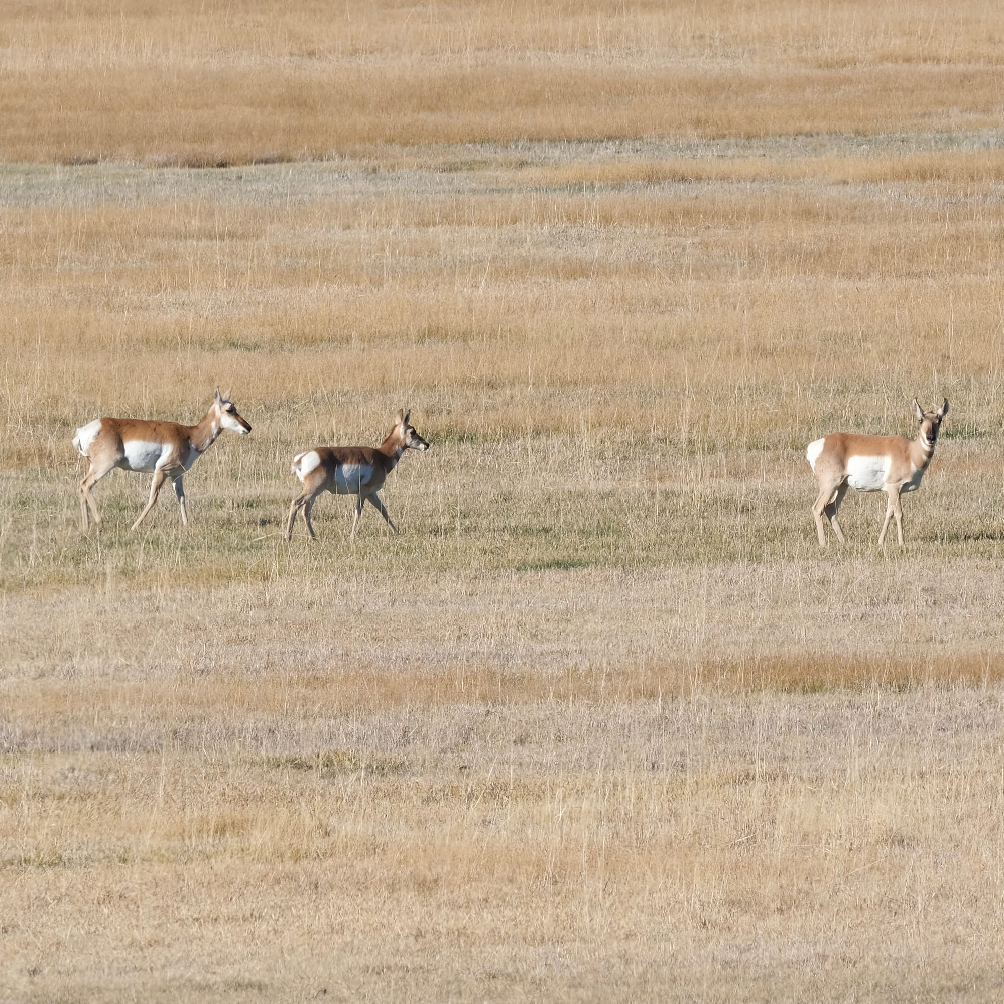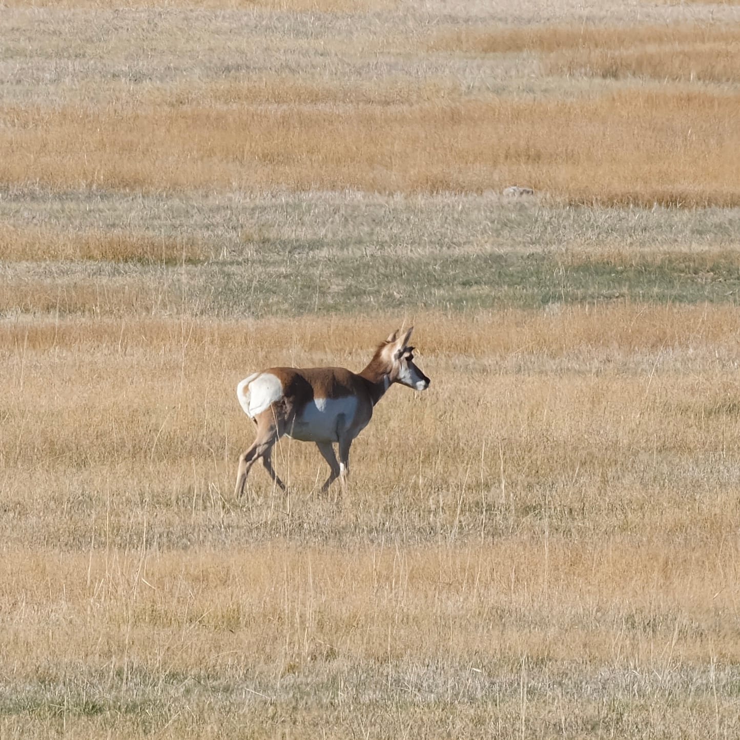 Not much further down the road some pronghorn antelope are out. It seems a male has assembled a harem of five or six. Mostly they eat and stand in the warm sun and cool wind.