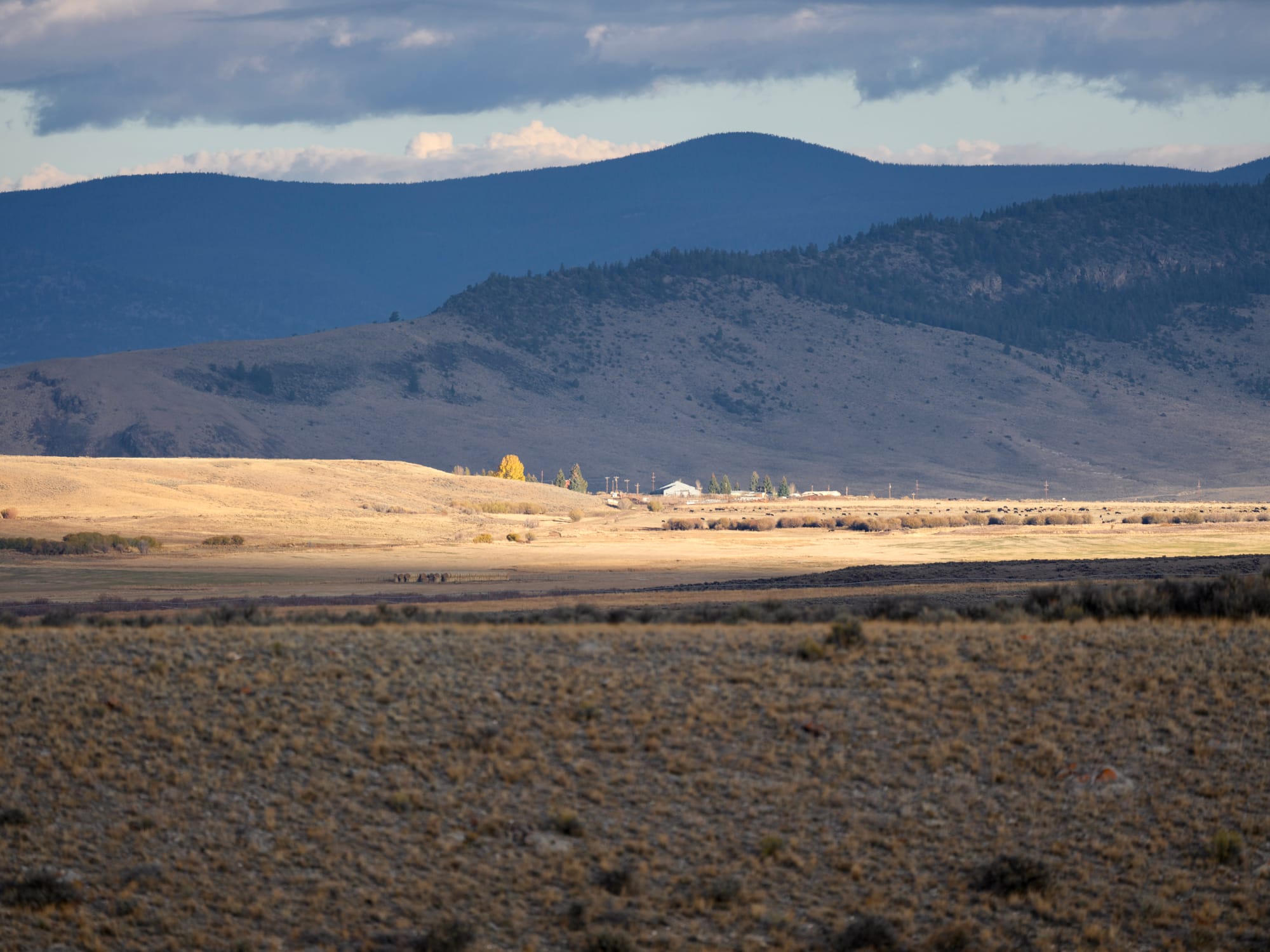 We drove for two hours under the deep blue Montana October sky across the dun colored sagebrush. Sected and bisected by fence. The valley a brown blonde exhausted grass of summer’s end. Sagebrush rimmed the valleys and its teal green draped over hillsides.