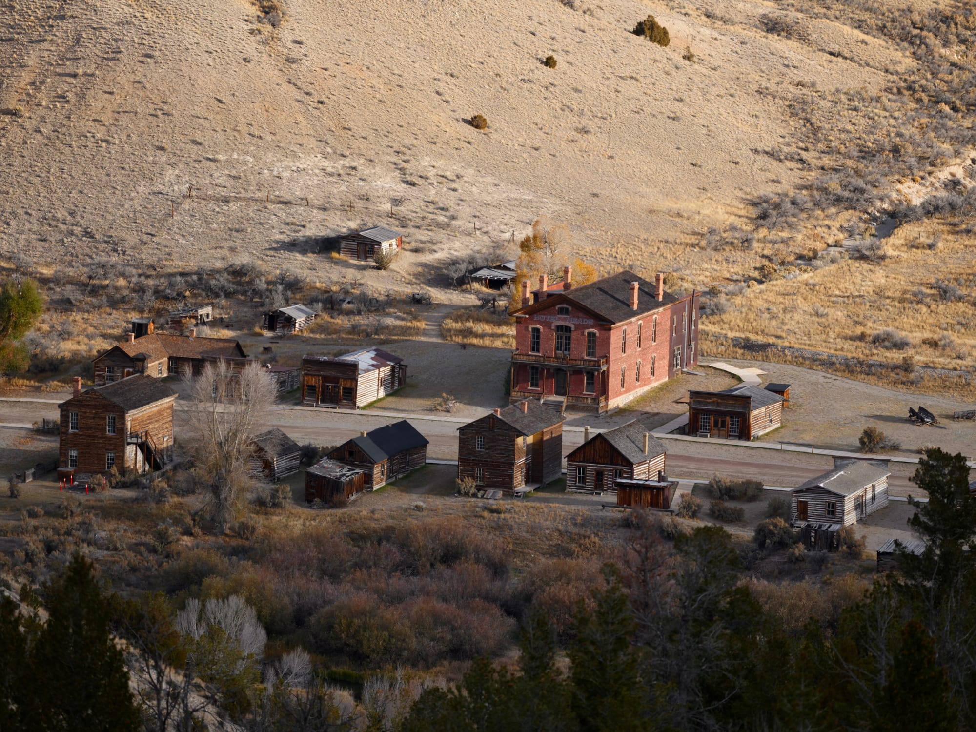 Bannack was also a kind of oasis, one we desperately needed. We descend from the sage brush hills into a small valley where Grasshopper creek meanders through willow and Fremont cottonwood trees. The wind is cut and you are left with the warmth of a dying afternoon sun.