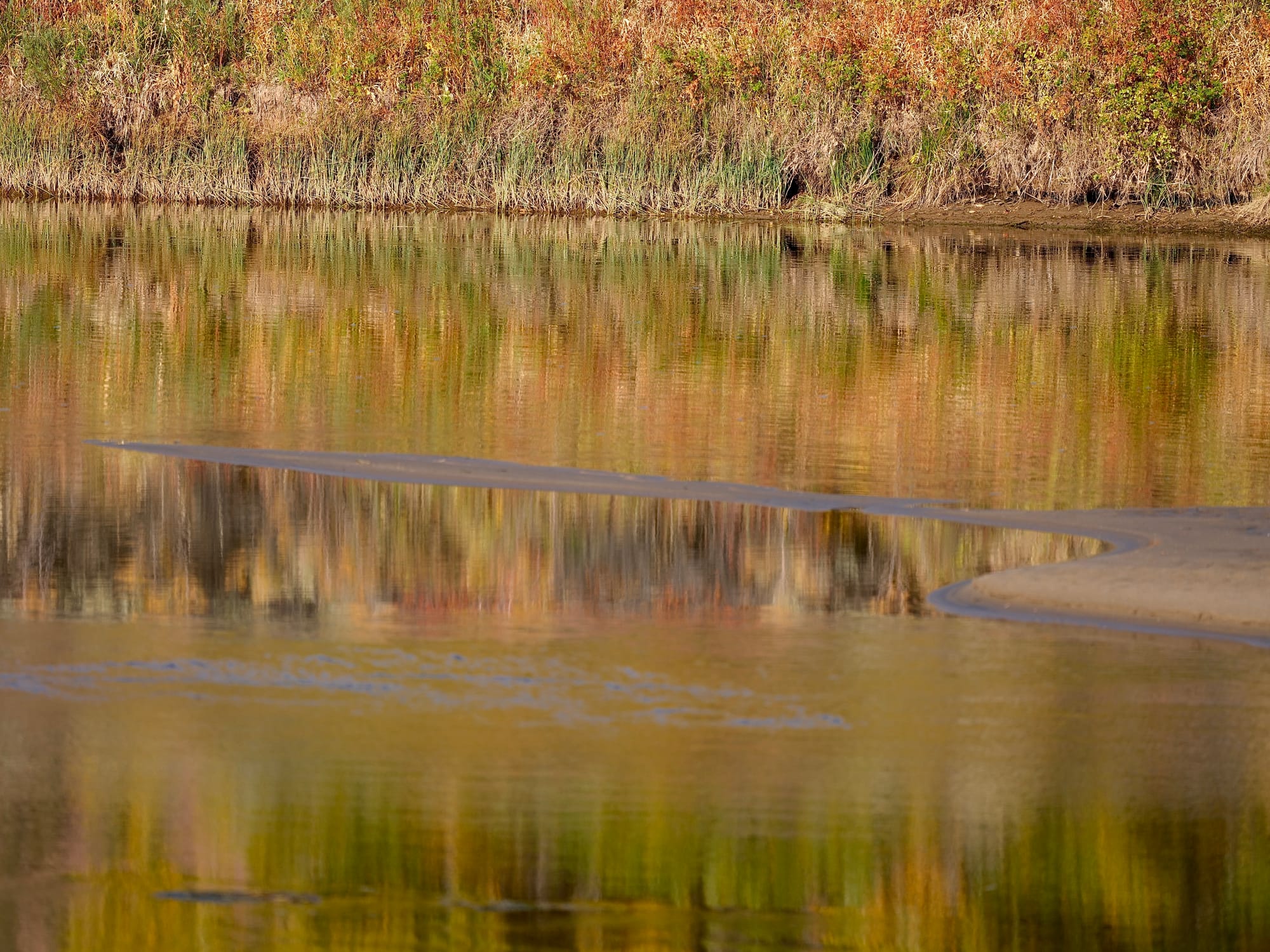 I return and the beaver has been disturbed by Mollie’s ruckus and is swimming out to a nearby sandbar. I quiet Mollie, the beaver moves downstream and returns to shore then disappears. Somewhat disappointed we resume our watch but the beaver fails to make a new appearance.