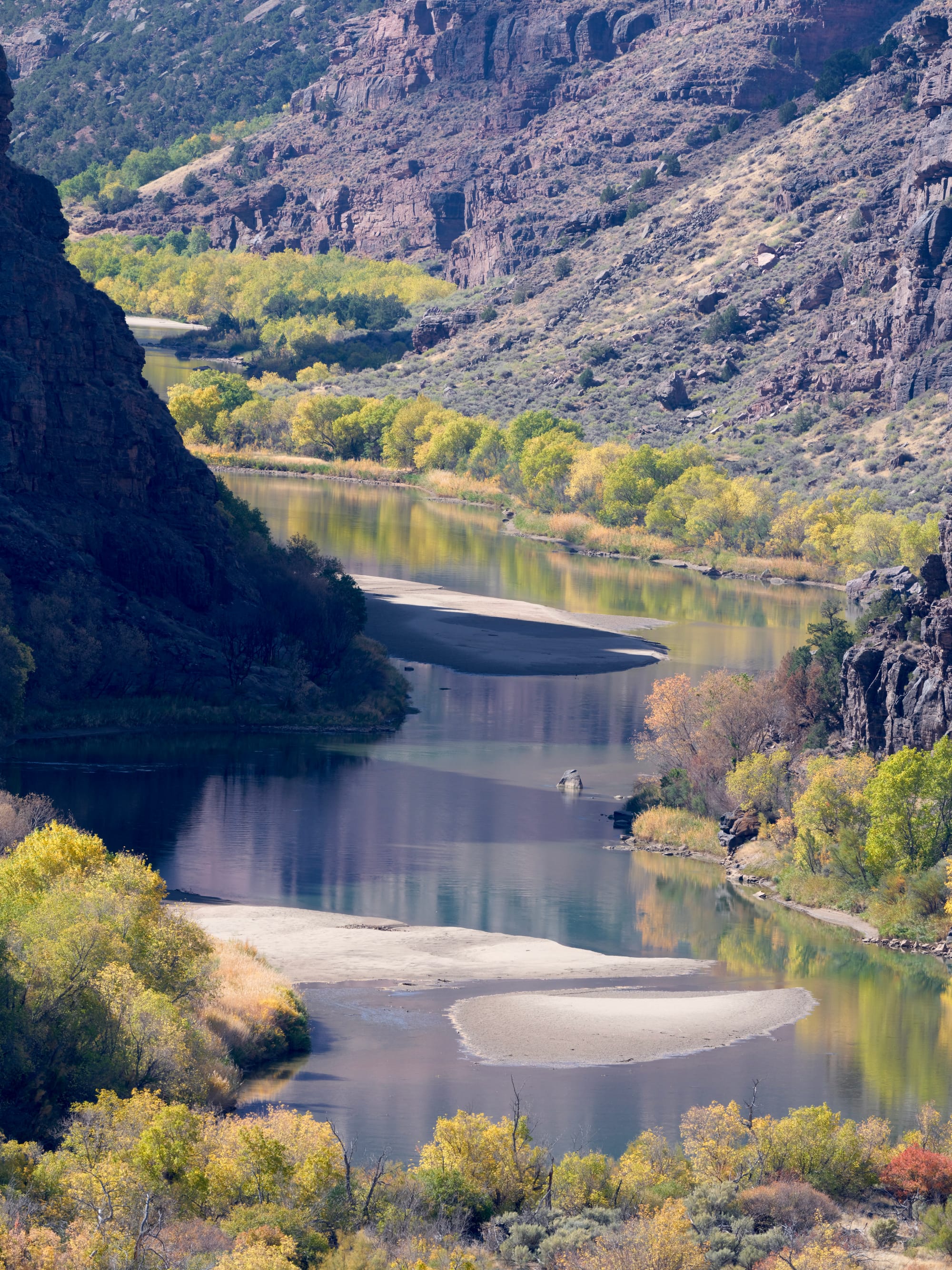 The Green river slipped silently below the bank where we perched. Inching down the far canyon walls the rising sun cast a warm light. Where the river ran over its rough bottom it rippled mimicking the ridged sandbar it rode past. The river, now shadowed, with a mist just rising from its mirrored surface and small eddies and riffles betraying the current.