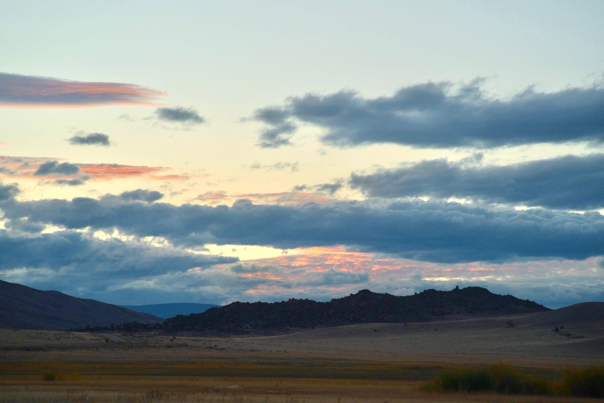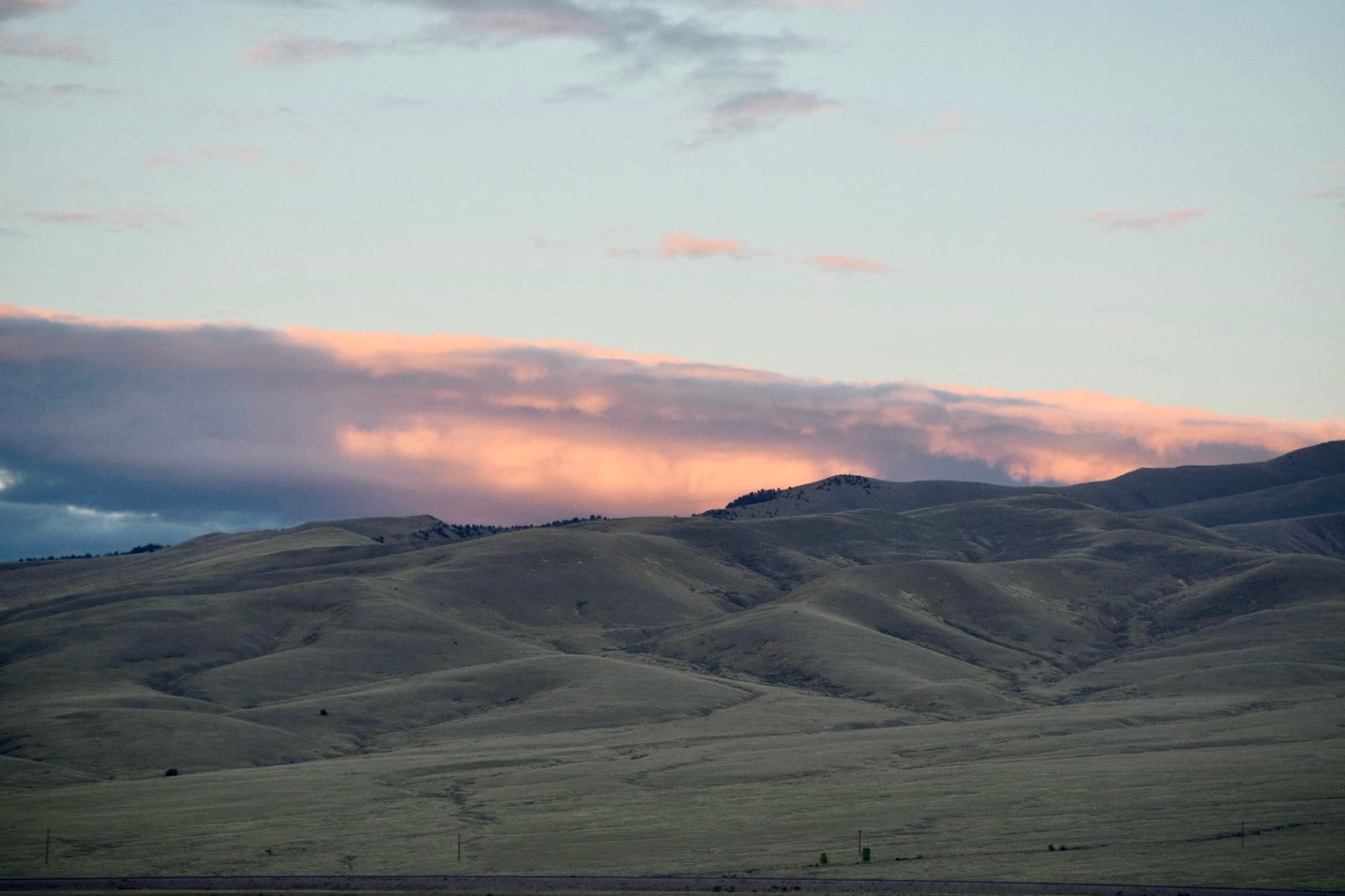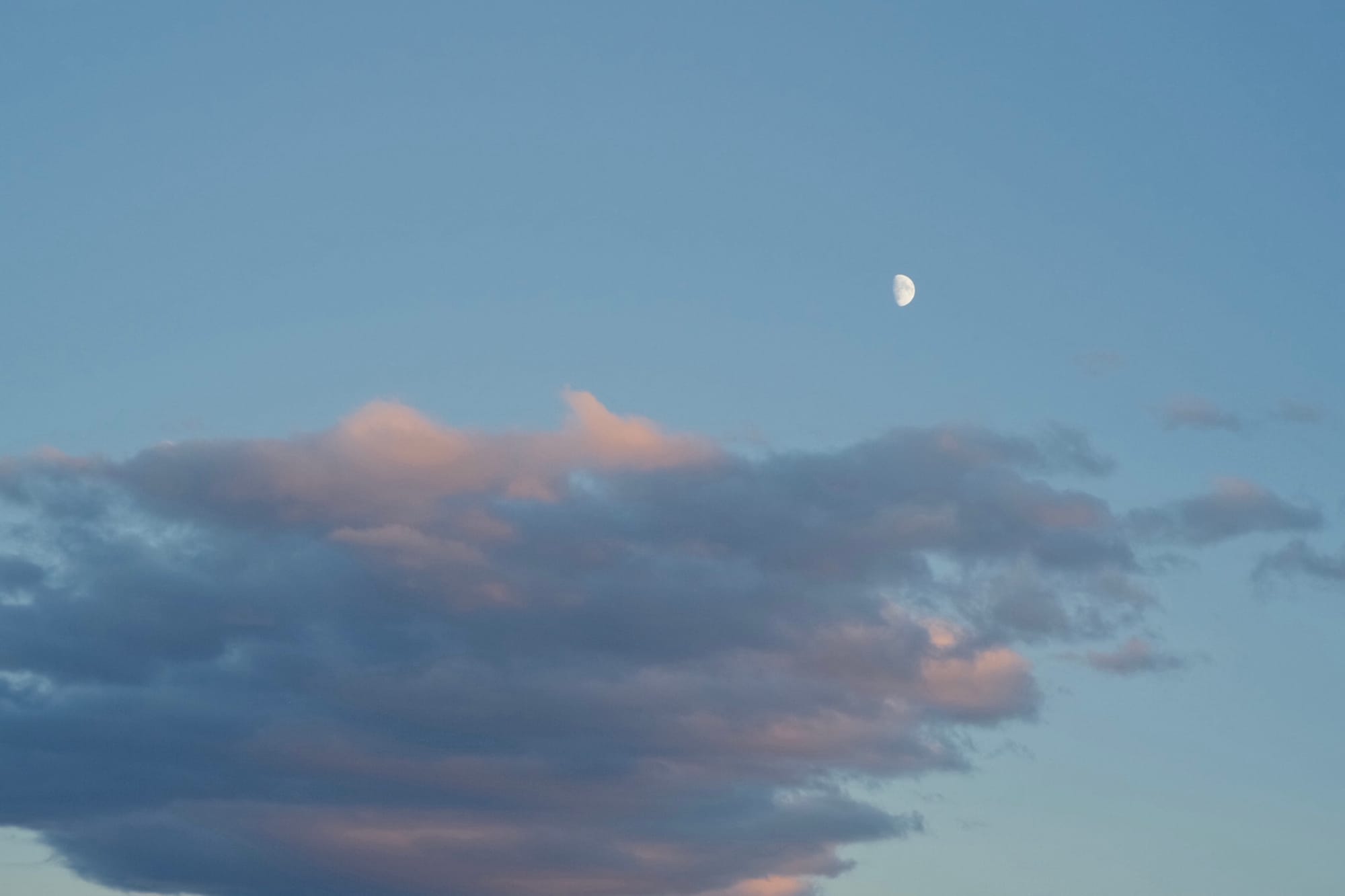 The sun set further darkening the cloud and brining the moon up with it. The sun played on the bellies of the clouds and finally relinguished its warmth to the cool tones of twilight as the grasses continued to radiate warmth.