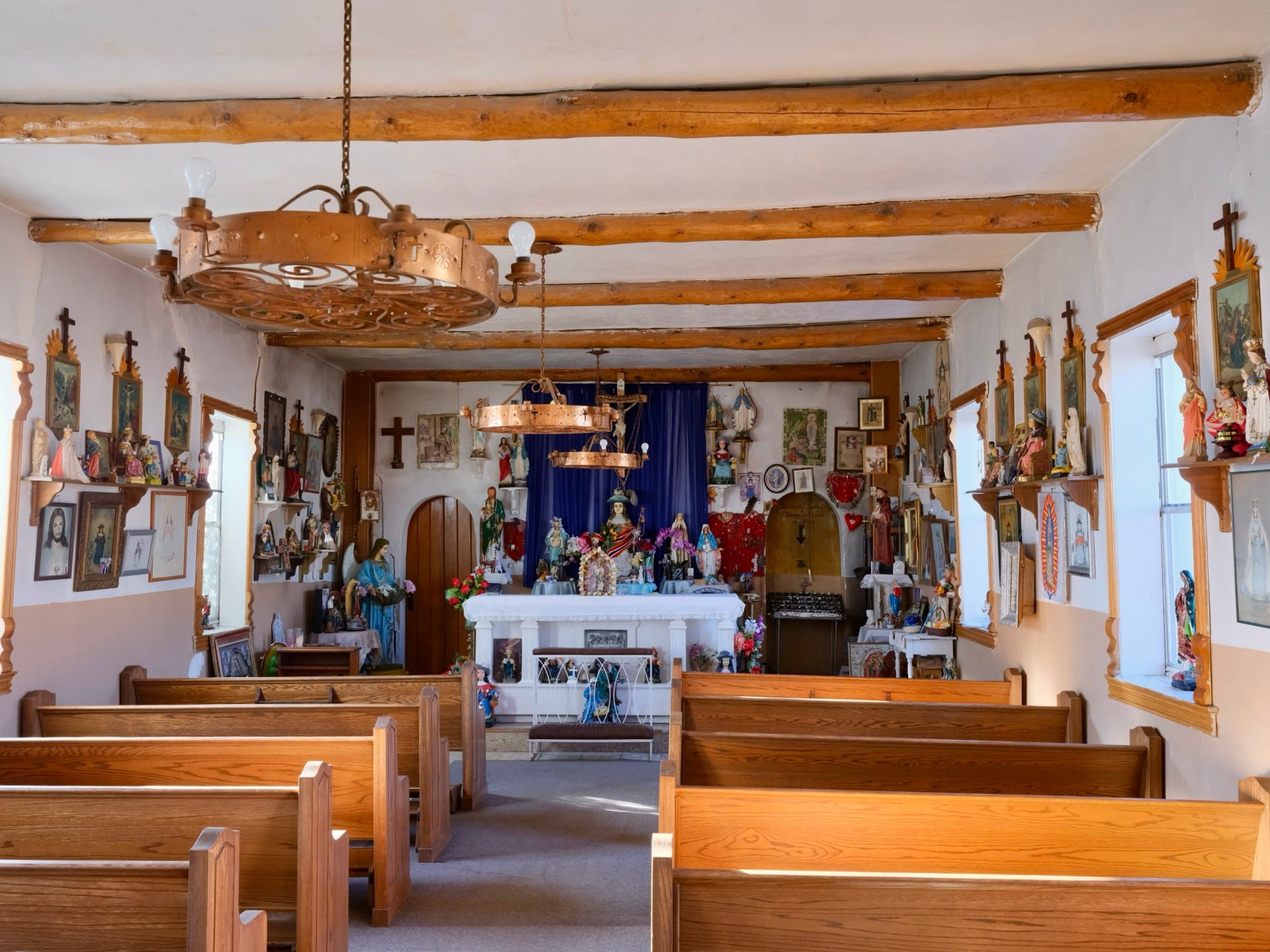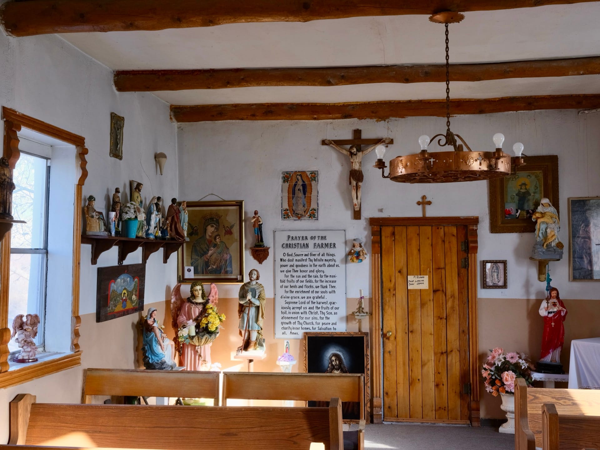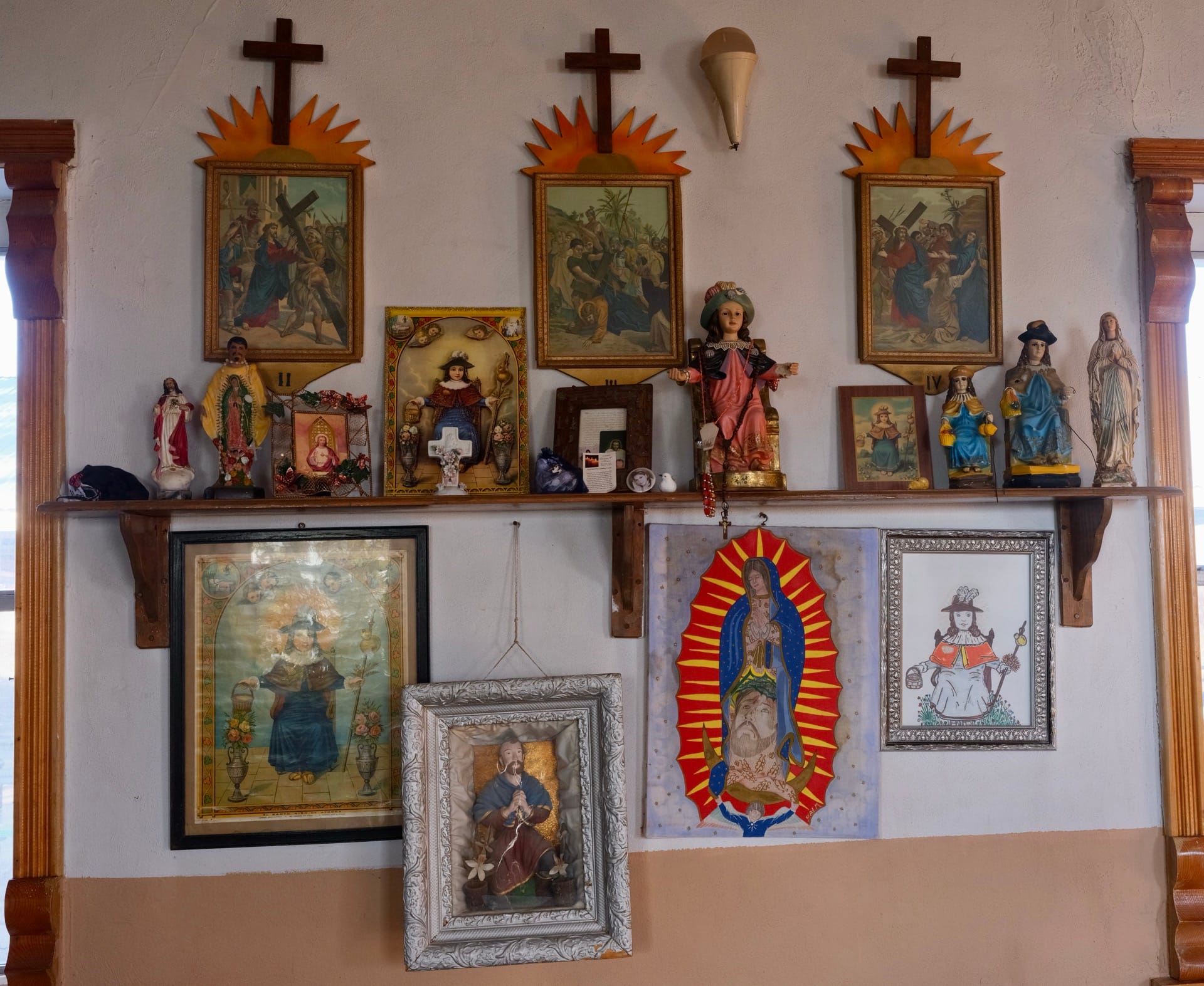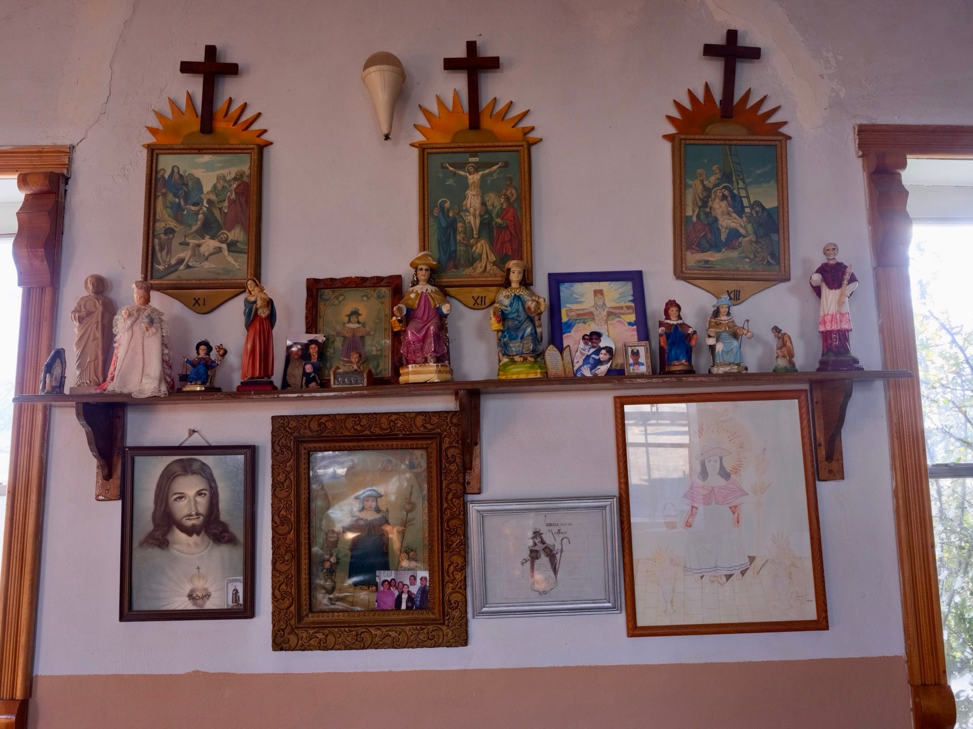 Inside the chapel is a raucous, brightly colored display of saints and statuary and crosses all under the rough-hewn beamed ceiling. Everything carried with it a feeling of personal care, love, and devotion.
