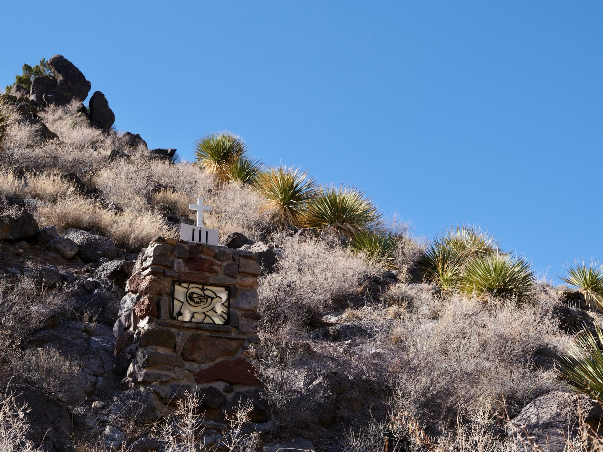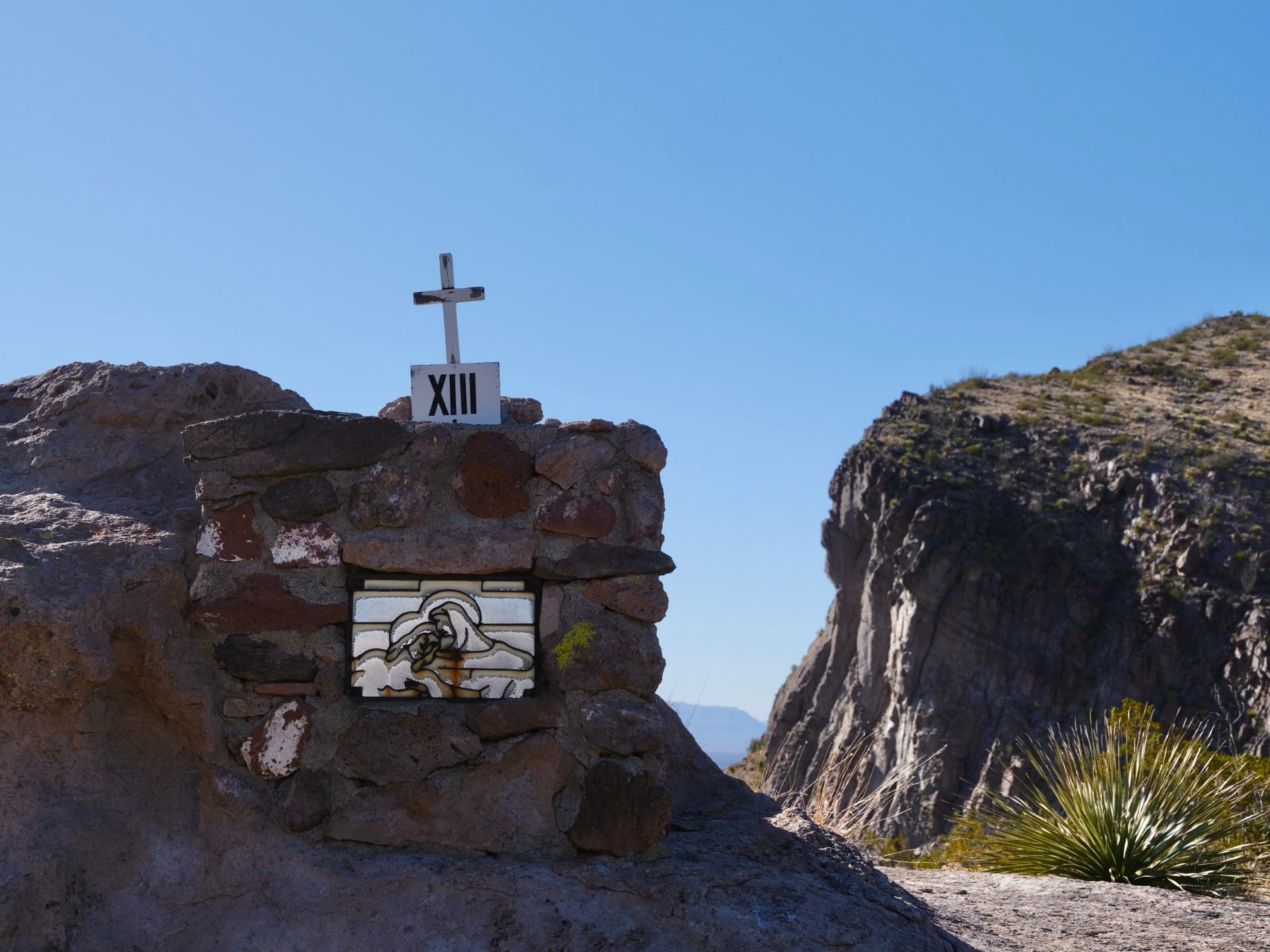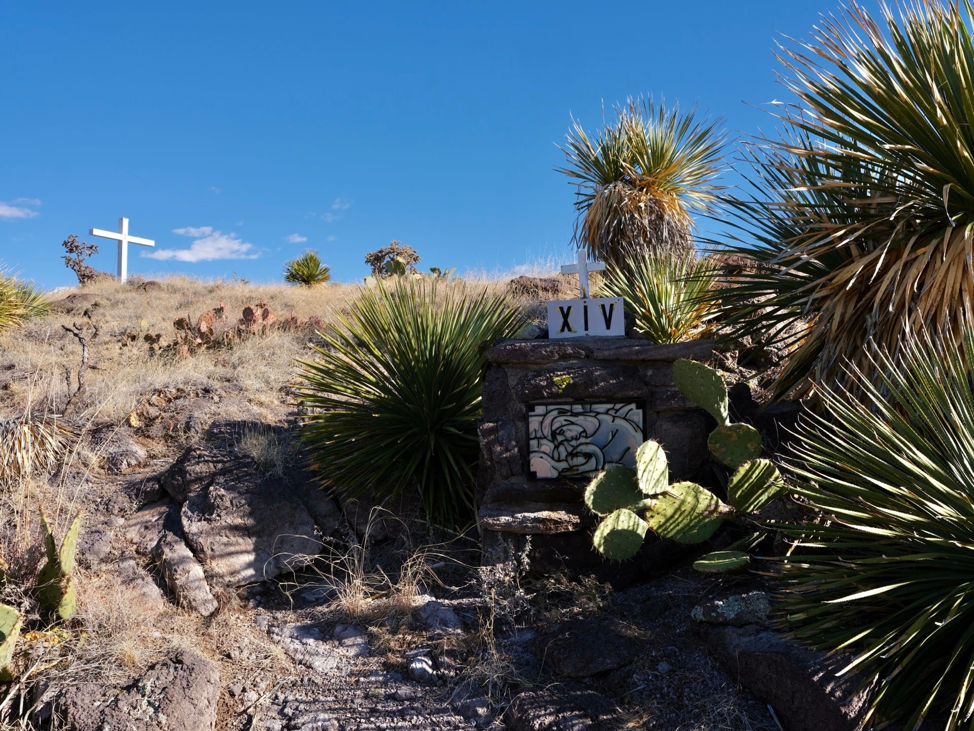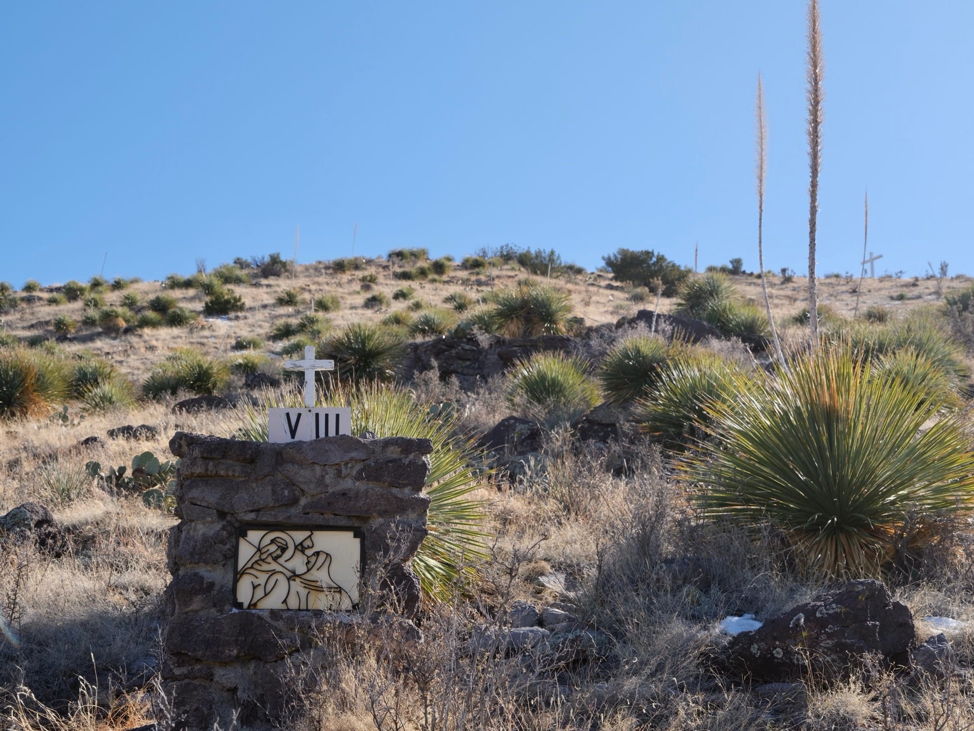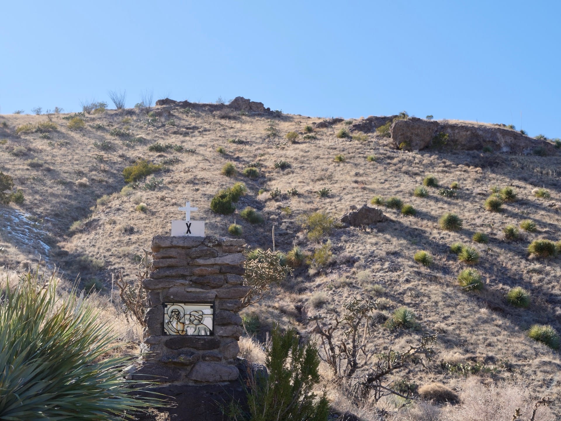 It is less than two miles round trip and the chance to contemplate each station provides well-spaced rests. It would be punishingly hot in summer but today it was perfect. At the top is a huge cross about 20 feet tall, anchored with guy wires on the edge of the precipice. Offerings and memorials are seen all around. It looks to have been constructed in 1969 based on various engravings on the panels around the alter.
