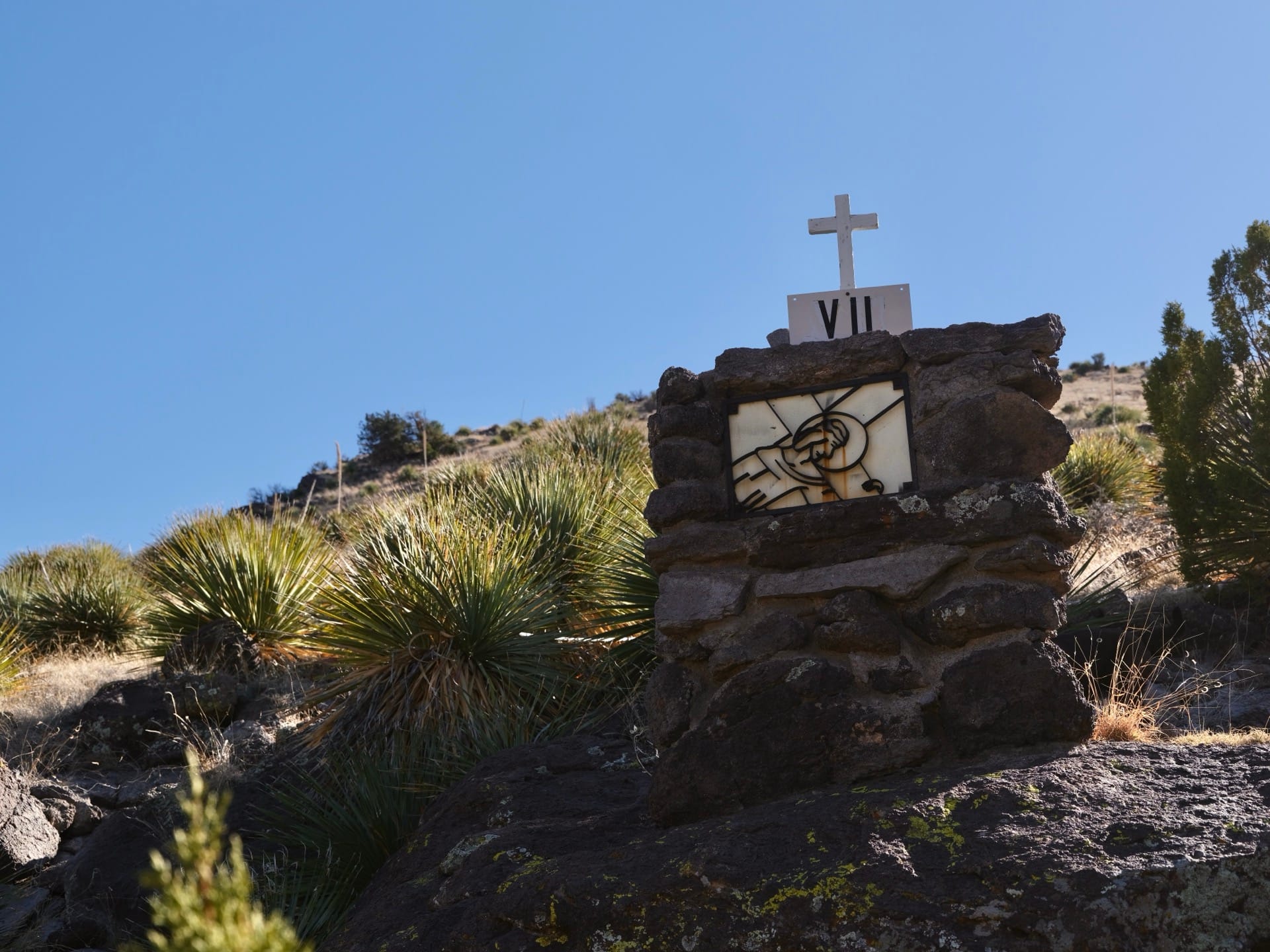 Stations of the cross 10-15. Note 11 has been destroyed. Final photo is the cross at the summit. About 20 feet tall.