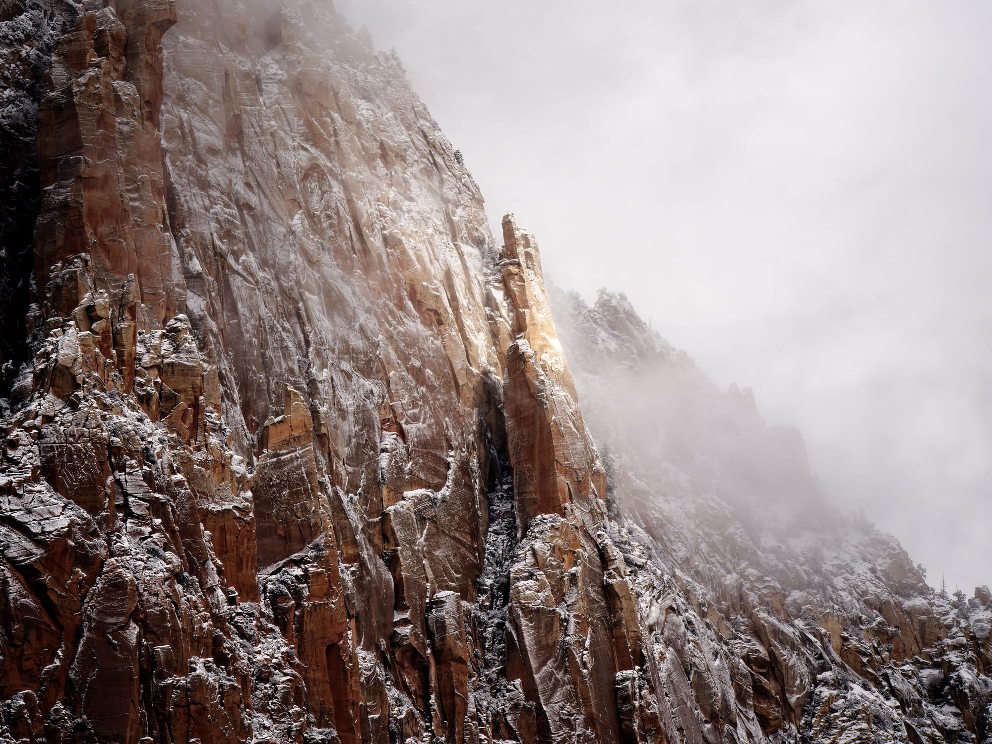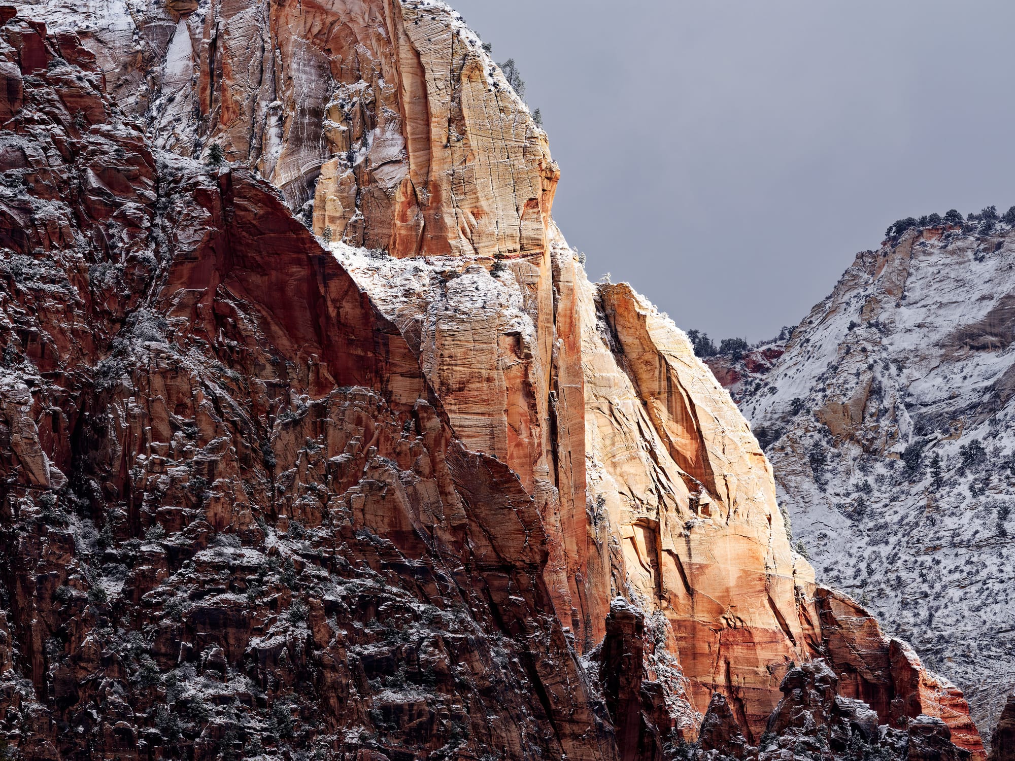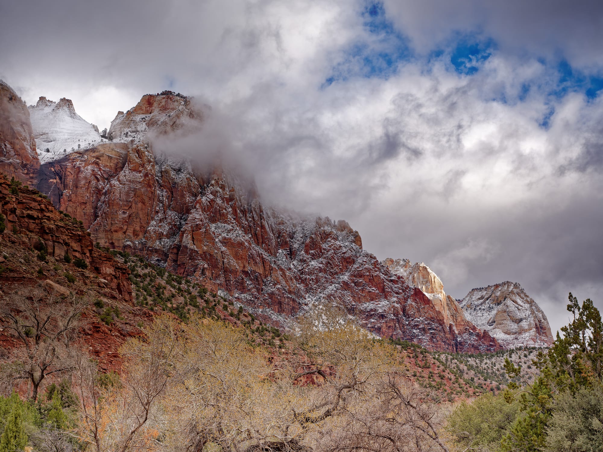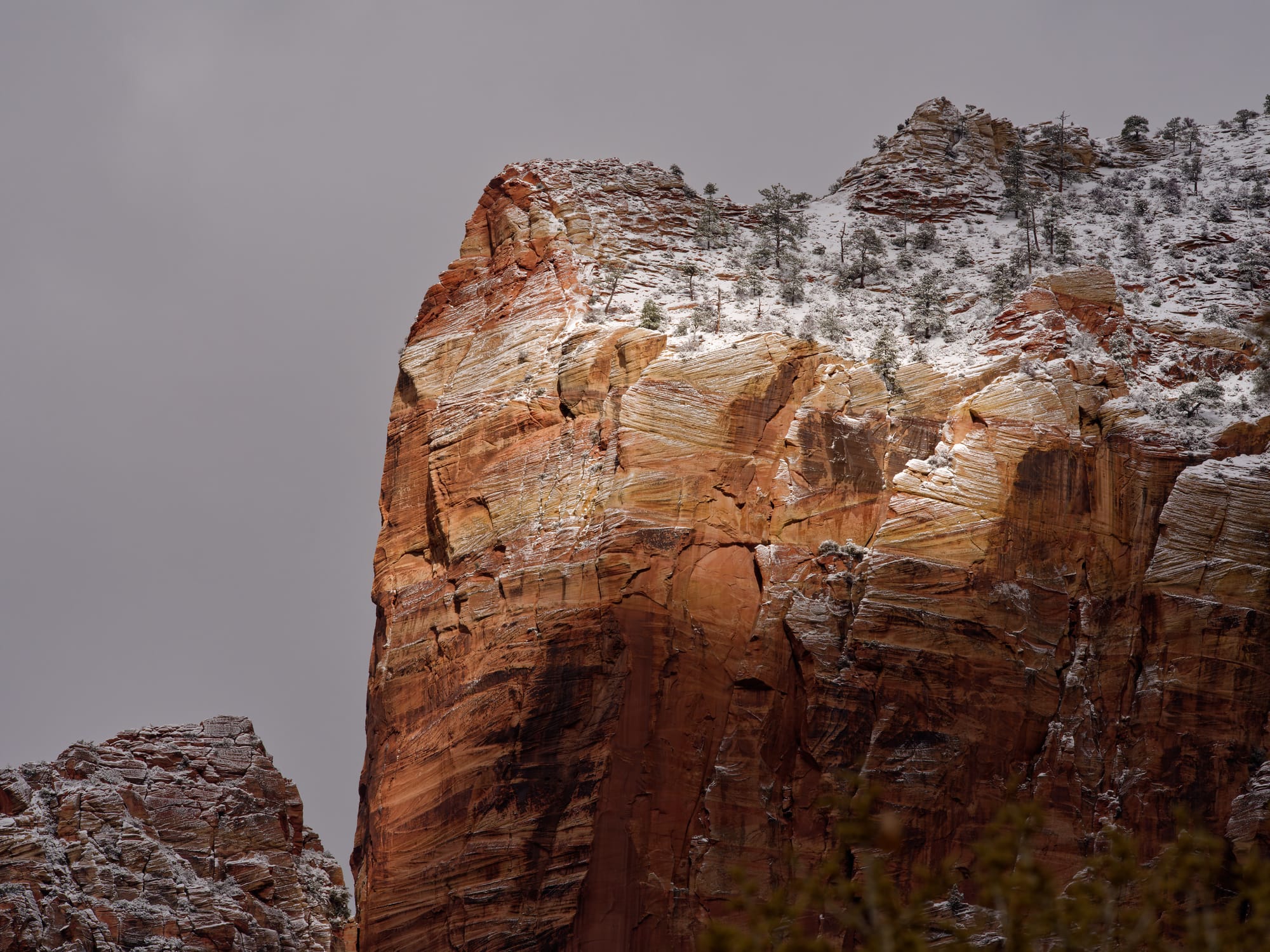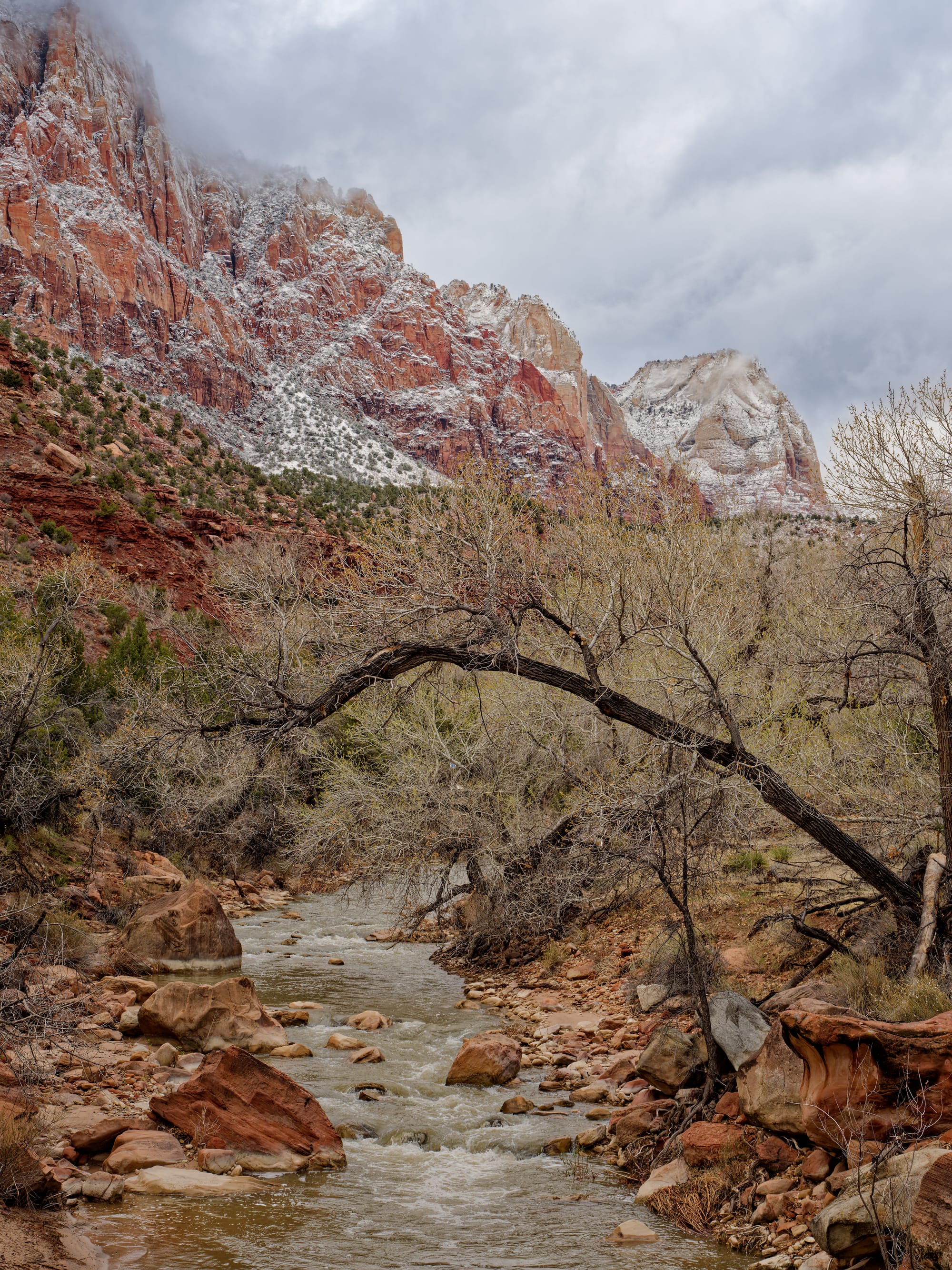 I’ve been revisiting photographs from earlier this year, taken as we drove through Zion. The trip wasn’t planned, we had been recalled home unexpectedly, but on the way, we paused briefly in Zion and Bryce. It was late winter, and we were fortunate to catch a light snowfall.